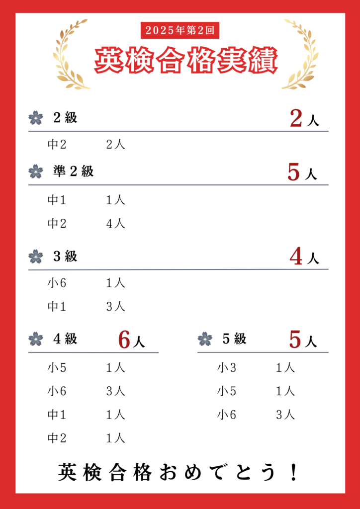学校の成績やテストとは別に自分の努力や成長が見えるいい機会になると考えております。